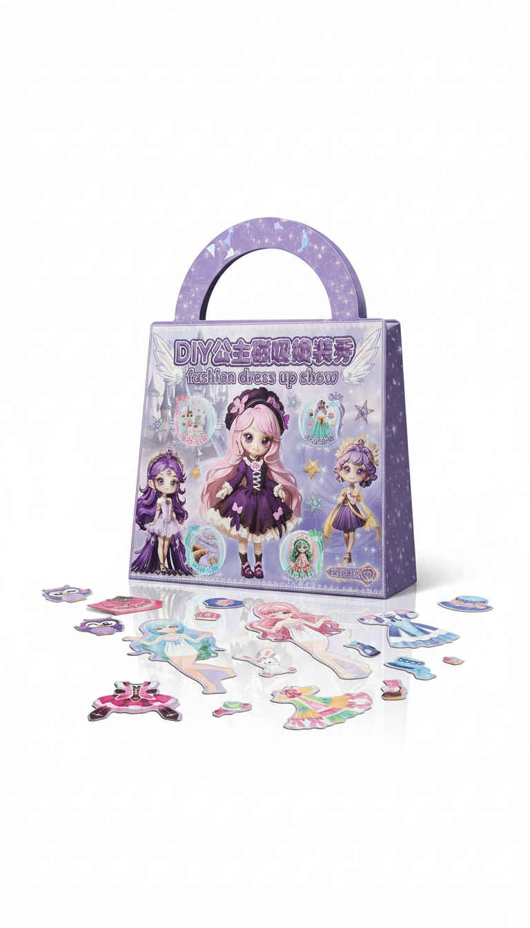 Our DIY Magnetic Princess Dress-Up Book lets kids explore fashion, storytelling, and creativity through interactive pretend play. Featuring strong magnets, colorful princess outfits, shoes, crowns, and jewelry, this Magnetic Doll Dress Up Set toy encourages hand-eye coordination and imaginative thinking. The portable case keeps everything organized, making it perfect for travel or play at home. Designed with smooth, child-safe materials, this durable and educational gift inspires hours of mess-free fun for girls ages 3-7.